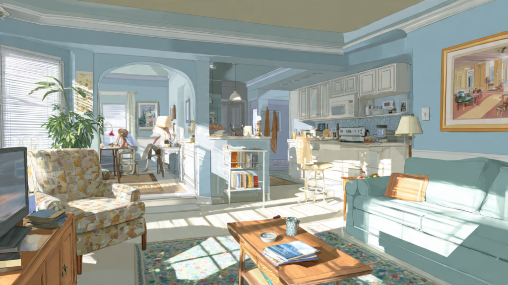 Rooms remember this transfer. A living room hears the same phrase decades apart. The house becomes witness to continuity.
